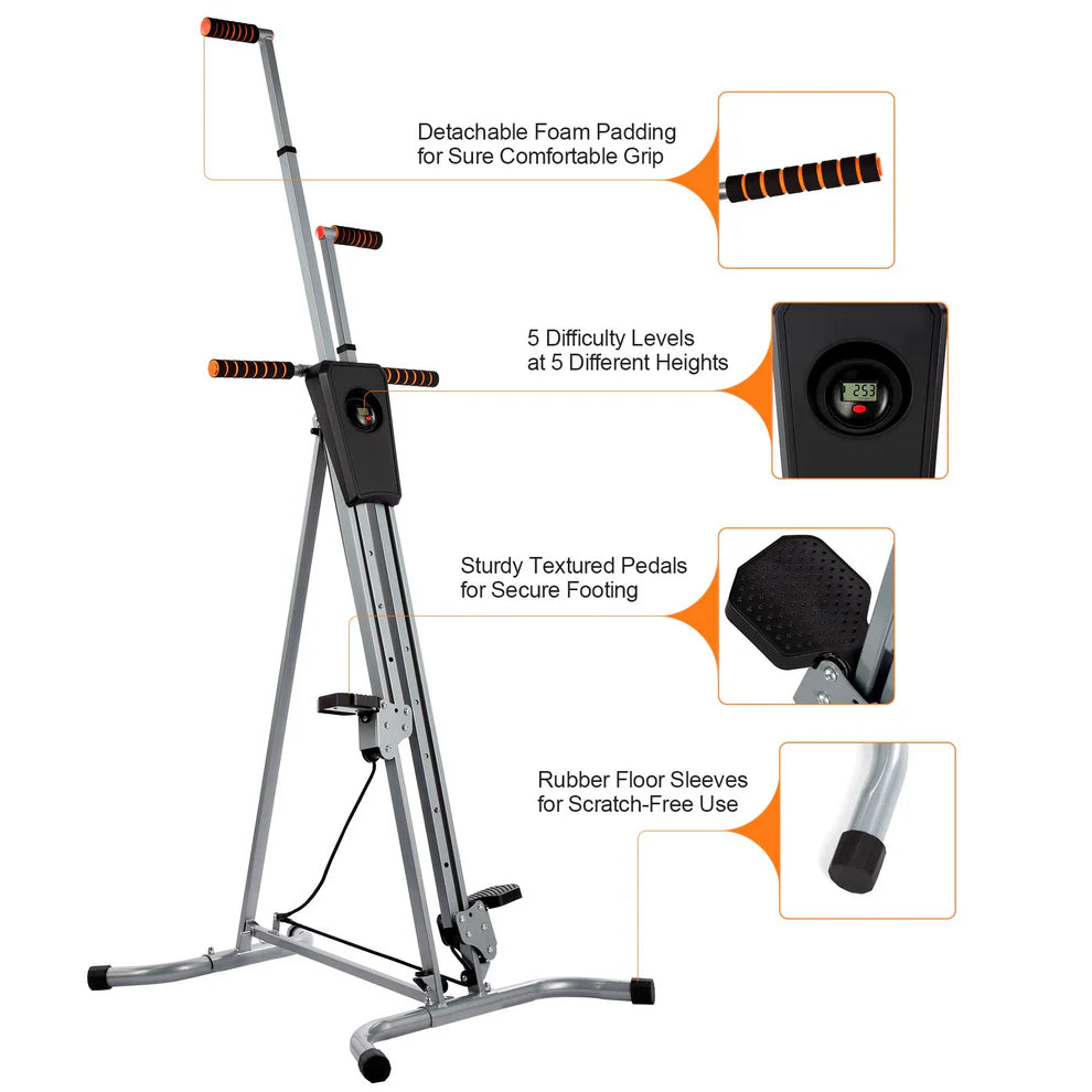 Isometric non-slip grips provide added stability while you work out and train so you don't have to worry about slipping or sliding. The vertical climber comes with an electronic fitness monitor that counts your steps and calories for effortless tracking to help you reach your fitness goals.